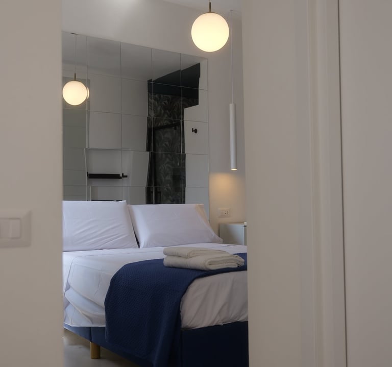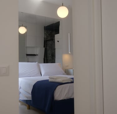 Situata al secondo piano del B&B raggiungibile con scale, offre un'atmosfera calda e una privacy assoluta. Gli ospiti possono godere di una doccia a vista, che aggiunge un tocco di eleganza, oltre a un mini soggiorno per momenti di relax. Il balconcino privato offre uno spazio ideale per sorseggiare una bevanda e godere della tranquillità circostante. Il bagno, a nicchia, completa l'esperienza con funzionalità e comfort.
