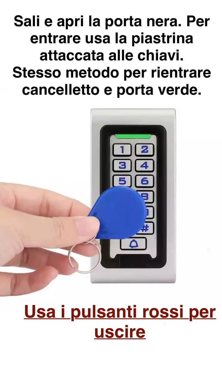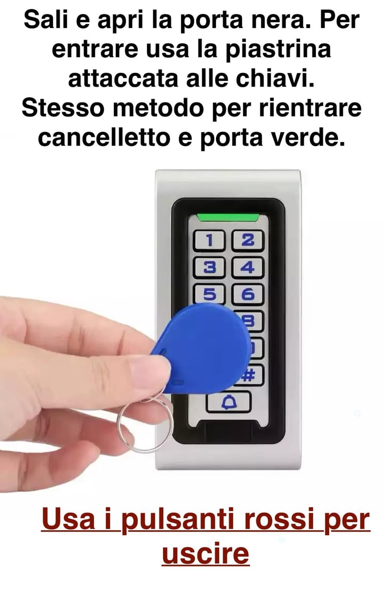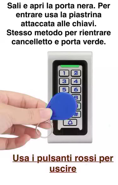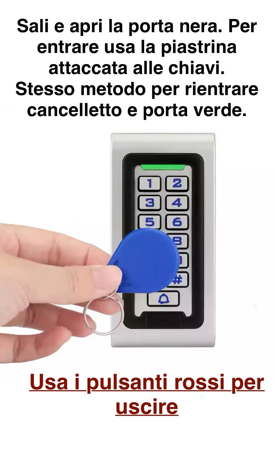 Scrivici su WhatsApp: provvederemo ad aprire da remoto il cancelletto grigio e la porta verde.